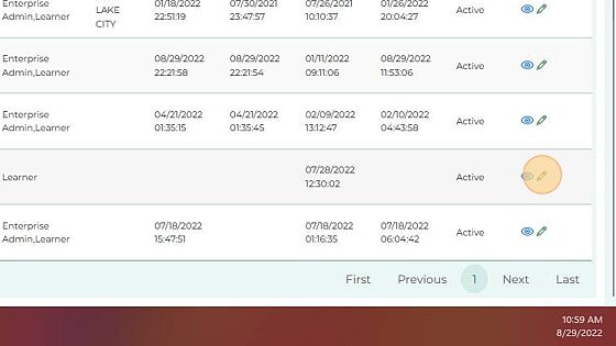 4. Locate the learner to edit. You can use the filters and the search bar to find the user quickly. Click the "Edit" icon it looks like a pencil.
