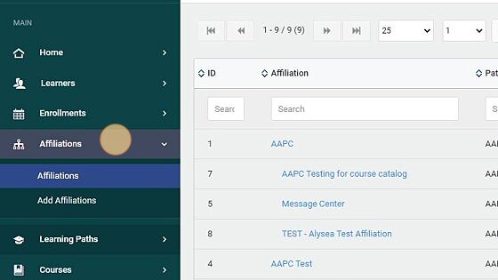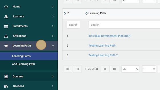 7. Learning Paths - this tab is used to perform operations with learning paths, including listing available learning paths and creating them manually. Learning Paths provide you a way to combine separate courses together in a logical fashion and allows you to complete one enrollment process into all assigned courses in the path.
