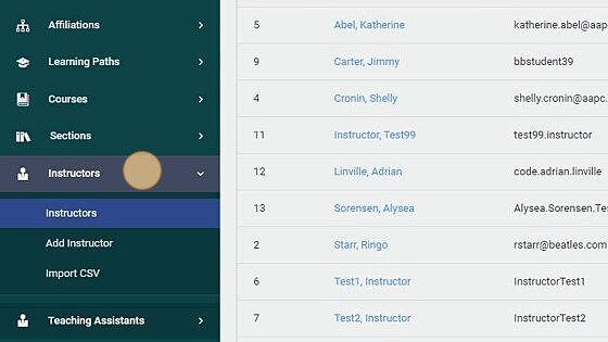 9. Instructors - allows you to perform operations with your instructors, including adding an instructor, editing an instructor's information, and searching for an instructor in your learning initiative.
