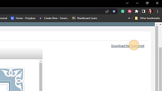 7. Click on "Download the Transcript" link in the right upper hand corner.