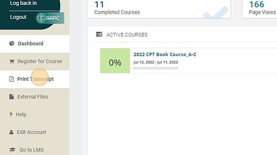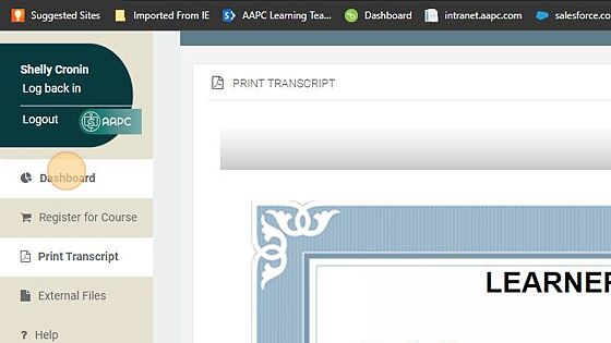 10. To go back to your learner dashboard from the Print Transcript view. Click on "Dashboard" from the left-hand menu.
