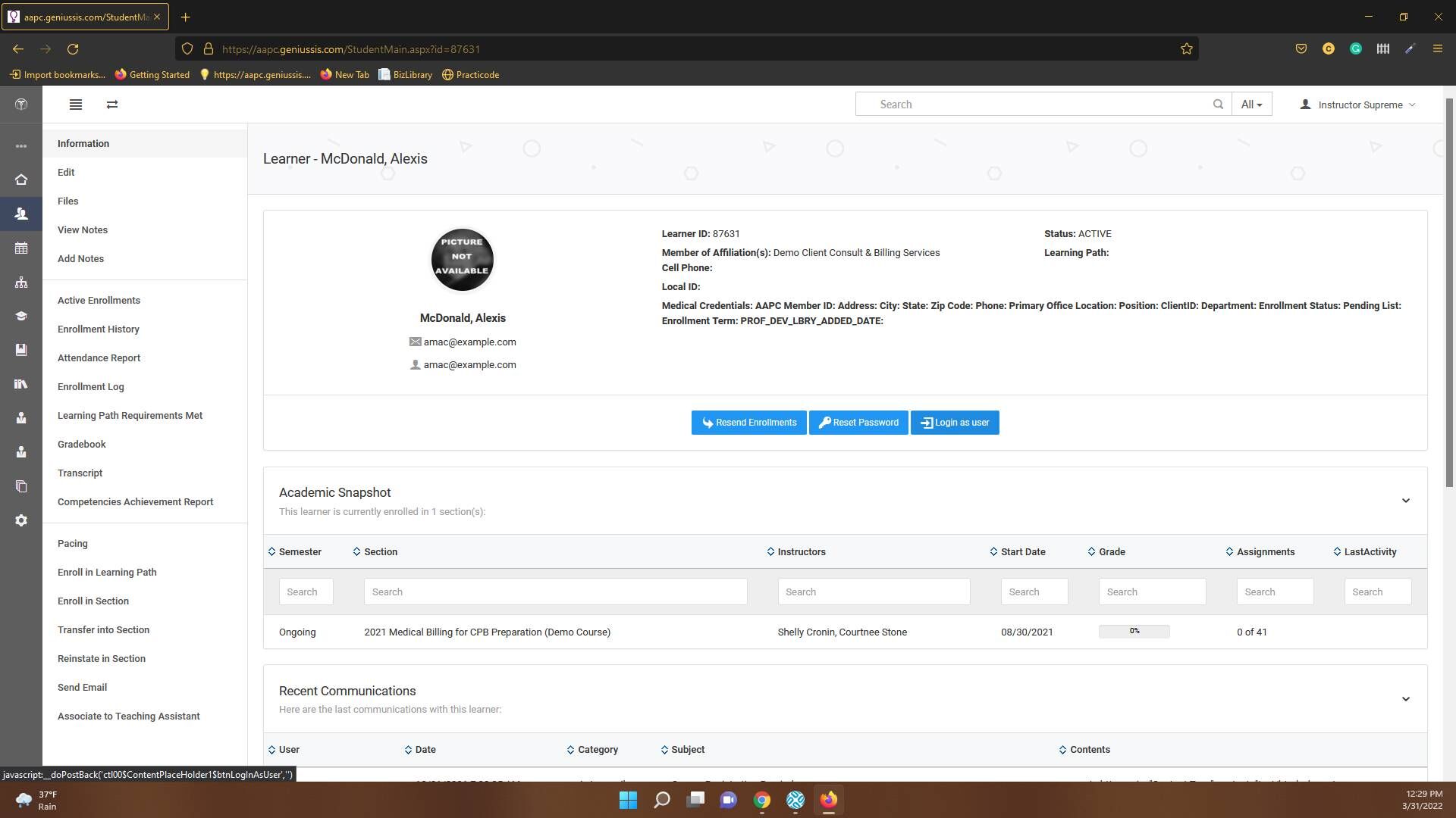 5. You can go into their assigned course(s). For example: Click "2021 Medical Billing for CPB Preparation (Demo Course)"