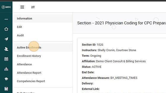 11. From your admin view in the Learning Center. Search for the section containing learners who need to be marked as complete.