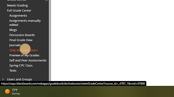 5. Click "Full Grade Center" or Only Available Users depending on what will work best for you.