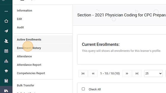 16. To edit the score showing on the Learners Dashboard click the "Enrollment History" menu option.